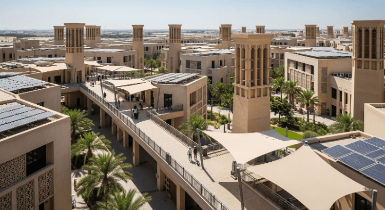 Masdar City is known for its sustainability-first environment. The district is designed around low-carbon principles, with LEED-certified buildings, shaded walkways, and efficient infrastructure that naturally supports companies working on climate solutions.